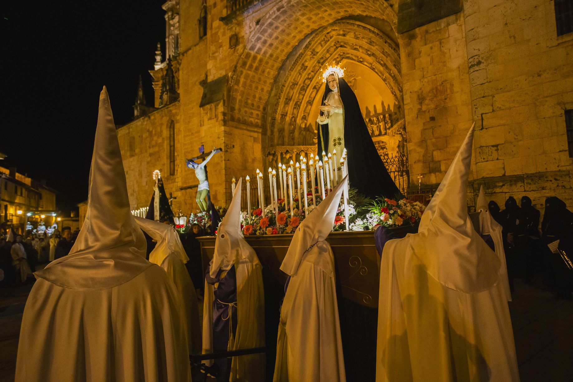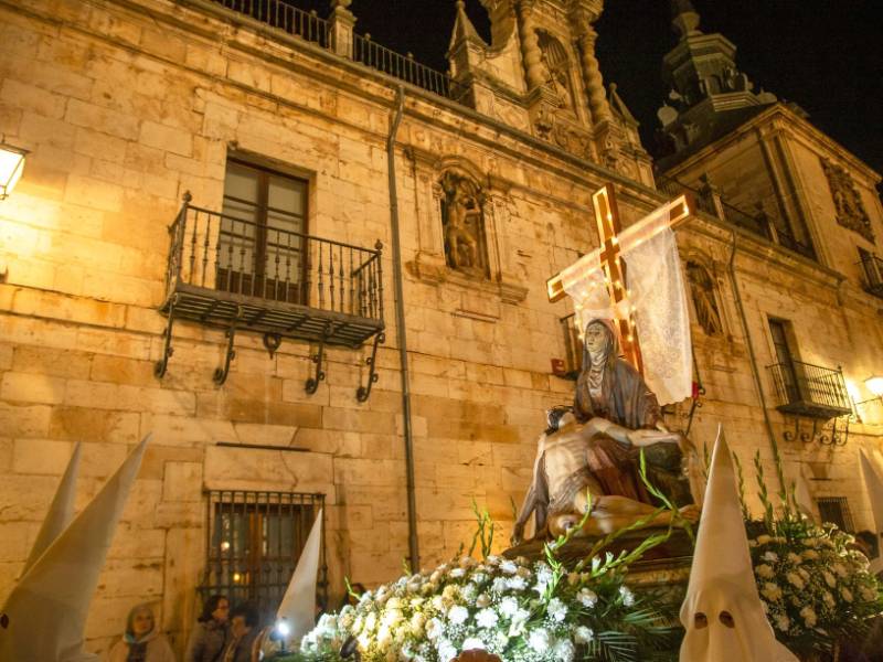 The events start on Viernes de Dolores (pain Friday) with the Vía Crucis, which leaves form the gothic cathedral. On the Sunday of the Resurrection the last procession is held, called el Encuentro de la Virgen con su Hijo Jesucristo Resucitado (the meeting of the Virgin with her resurrected son) in the Plaza Mayor.