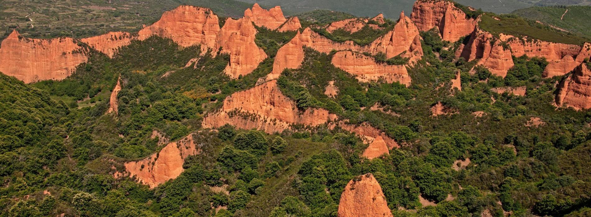 - Espectacular paisaje, resultado de las explotaciones auríferas de época romana con un fuerte contraste cromático entre los tonos de los desmontes y el entorno.
