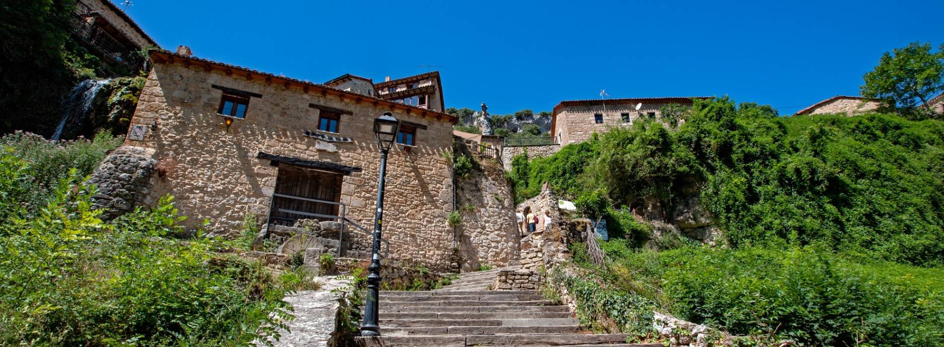 Déjate seducir por la perfecta armonía de este pequeño pueblo de estilo montañés y ambiente medieval situado en un entorno natural que parece de cuento de hadas junto a una maravillosa cascada natural de más de 25 metros.