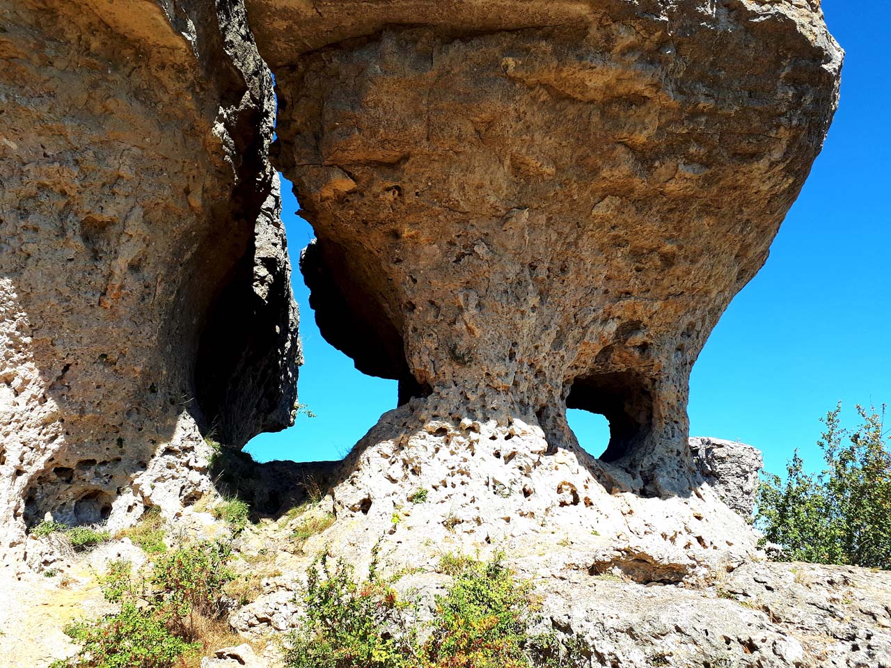 Explorez Las Tuerces, un impressionnant paysage karstique façonné par l'action de l'eau sur la roche calcaire. Découvrez le labyrinthe de Las Tuerces, un réseau de couloirs et d'allées entre des blocs de roche, et émerveillez-vous devant les formes fantaisistes de gigantesques champignons de pierre, de ponts et d'arches naturels. On dirait que vous êtes sur une autre planète ou dans un conte de fées. De plus, vous pourrez observer la flore et la faune du lieu, comme des chênes verts, des chênes, des vautours, des aigles ou des chevreuils.