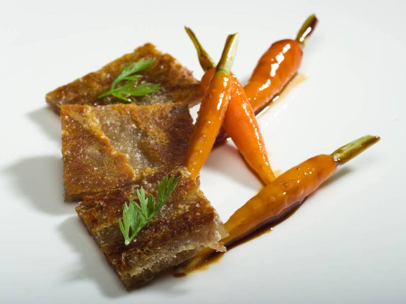 The culinary work of this restaurant is very focused on products of the surroundings and of season, from this approach begins for Marc an especially intense relation with the vegetal world that forms a very remarkable part of his letter. The gastronomic offer of Le Domaine includes the somewhat more informal atmosphere of La Vinoteca, located just above the cava where the historic collection of bottles of Abadía Retuerta, and the most sophisticated proposal of El Refectorio. This last one allows the diner to enjoy the pleasures of the good table in the same place where they did the monks several centuries ago. It is here precisely where the talent and enthusiasm of Marc Segarra shines with all its power, with a contemporary kitchen and foundation.
