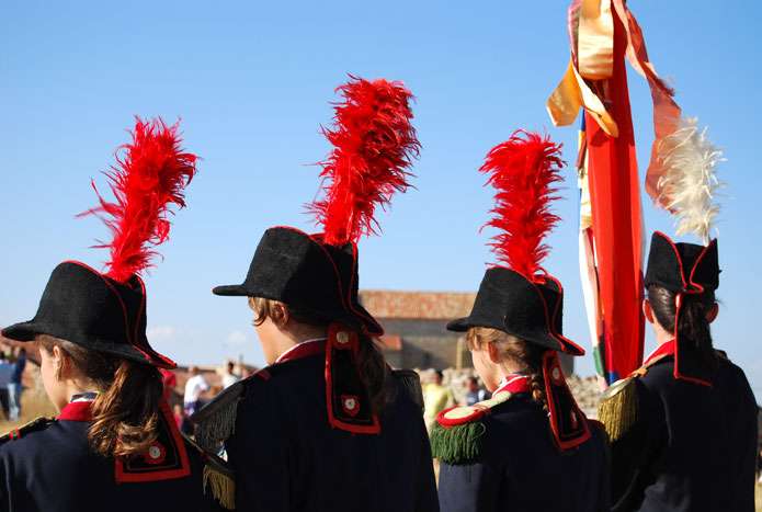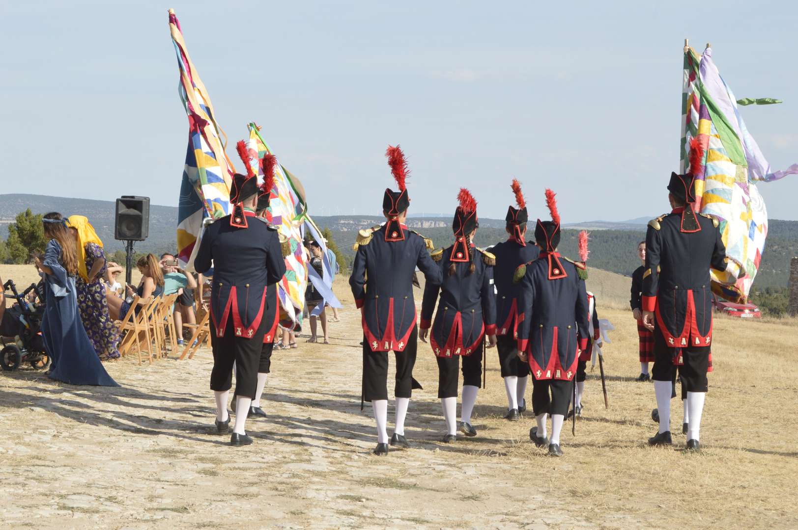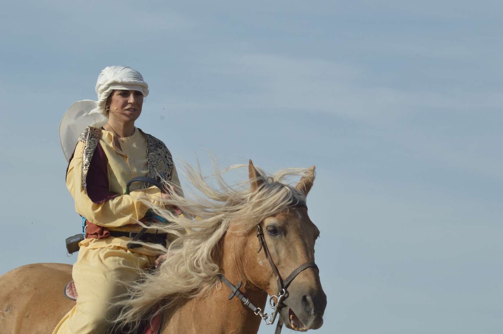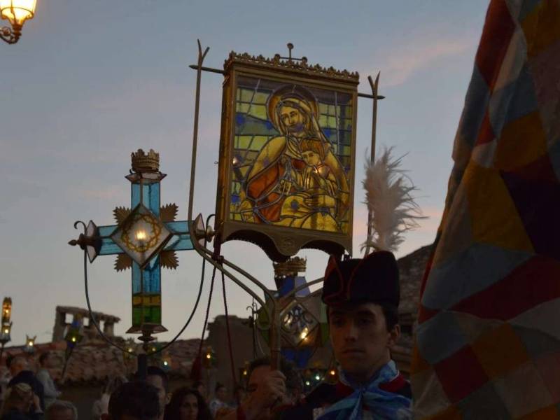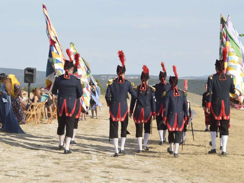 Consiste en el simulacro de una batalla a caballo en la que cuatro moros se baten contra cuatro cristianos por la conquista de la imagen del pueblo, la Virgen de la Cabeza. Durante el enfrentamiento, los actores recitan un texto de contenido religioso, que culminará con la aparición del ángel que convertirá al cristianismo a uno de los últimos traidores.