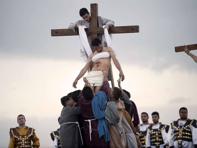 The square becomes the stage where the different scenes of the passion and death of Jesus Christ are represented.