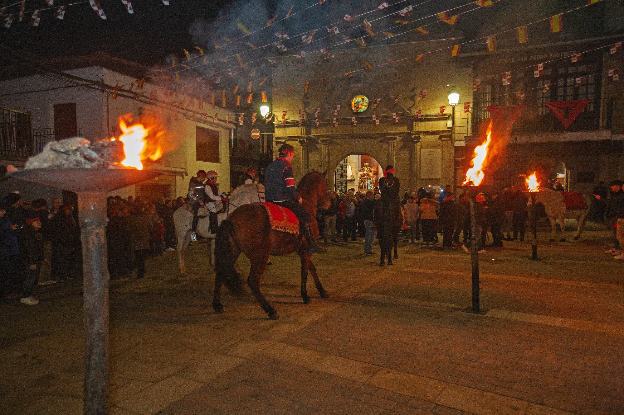 Al caer la tarde, ya desde el siglo XVII, las campanas de la parroquia y de la capilla del Santo llaman a los vecinos para que se reúnan en la plaza de San Pedro Bautista. Una procesión de jinetes y vecinos a pie arrancará en honor al Santo para lanzarle vítores.